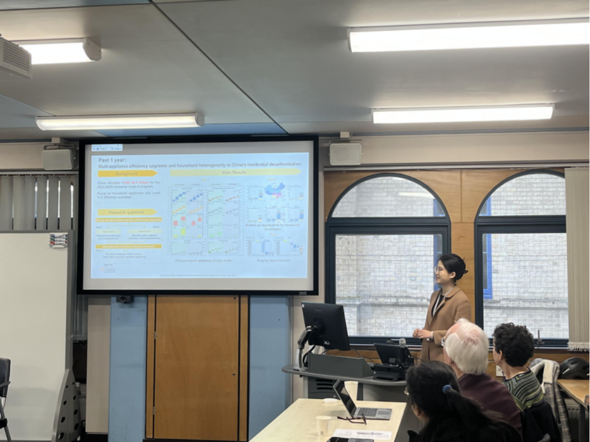 张睿宁于2026年1月19日参与了由剑桥大学能源政策研究小组(EPRG)举办的学术讨论会。研究组全体成员逐一汇报了自己过去半年的研究进展以及未来半年的研究计划。张睿宁作为研究成员之一进行了汇报,获得了组内其他研究成员的积极反馈与宝贵意见,拓展了自身的学术网络。