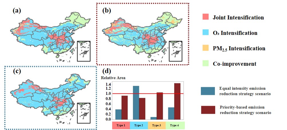 中国作为全球最大的发展中国家,面临着改善空气质量和减少温室气体排放的双重挑战。本研究基于2015-2022年中国高空间分辨率(1公里)的PM2.5和臭氧(O3)数据集,将中国划分为四种污染演化类型:污染共同加剧型、臭氧污染加剧型、PM2.5污染加剧型和污染协同改善型。研究采用堆叠集成机器学习模型,模拟了真实气象条件下人为排放与污染演化之间的复杂非线性关系 。结果显示,过去几年中国在PM2.5治理上取得了显著成效,但臭氧污染依然顽固,部分地区甚至出现反弹。研究利用Shapley可加性解释(SHAP)方法识别了各区域实现协同改善所需优先管控的前三大排放因子。情景模拟证实,相比于一刀切的减排方式,针对各区域关键驱动因子(如甲烷、氧化亚氮和二氧化硫)进行的优先级精准管控,可使全国范围内的协同改善面积扩大约40% 。