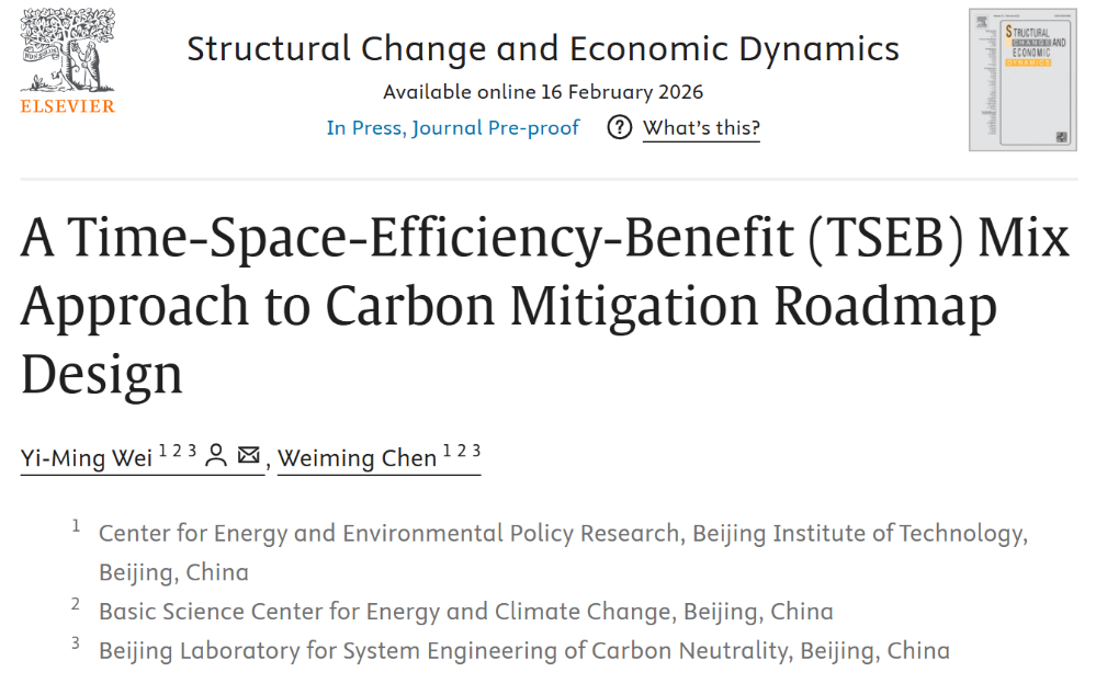 引用来源:Wei, YM., Chen, W. A Time-Space-Efficiency-Benefit (TSEB) Mix Approach to Carbon Mitigation Roadmap Design. Structural Change and Economic Dynamics 2026. https://doi.org/10.1016/j.strueco.2026.02.006